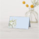 Peixe-estrela do jardim marinho e cartão de lugar dobrado pela hydrangea. Cor azul-clara com uma estrela prateada num design de flor branco de hydrangea no lado esquerdo. Nome manuscrito ou nome e número da tabela (para usar como cartões de escolta) e dobrar para ficar em pé em uma configuração de mesa ou lugar.