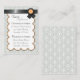 Cartões de informação convenientes de 2,5" x 3,5" para os seus convidados de casamento a carregar no dia do seu casamento. Belo casamento com uma cinza de urze e cor damasco branca e uma design de fita preta com laranja no topo. Eles ajustados facilmente na maioria das bolsas e bolsos de terno masculinos.