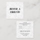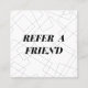 Mantenha-o elegante e na moda com estas placas minimalistas "Consulte um amigo". Com um padrão geométrico preto-e-branco limpo, este design é perfeito para salões, estúdios ou negócios de butique modernos. Incentivar consultas de clientes e recompensar a lealdade com 15% de desconto para ambas as partes. Simples, profissional e eficaz — essa placa se alinha perfeitamente a uma marca chic contemporânea.