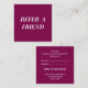 Faça uma declaração com estas placas magenta marcantes "Refer a Friend". Com uma matiz rica, profunda e elegante tipografia, esta carta é perfeita para salões, spas ou marcas de serviço de escala superior que desejam crescer através do marketing de palavra-boca. Recompensar clientes leais e receber novos clientes — ambos recebem 15% de sua próxima visita. Cor poderosa, mensagem profissional.