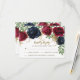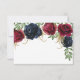 Cartões de Resposta de Casamento Burgundy Rústico e Azul-Marinho - com belas rosas e peônias pintadas em aquarela em tons de Marsala, burgundy e azul-marinho, intercaladas com folhagens. Os toques dourados nas flores e folhagens trazem sofisticação. A tipografia é impressa em dourado e bronze, realçando a decoração. Visite a página da coleção para ver todos os produtos relacionados.
