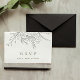 Cartões de resposta de casamento elegantes e sofisticados com um lindo buquê floral desenhado à mão na frente e todos os detalhes de resposta fáceis no verso.