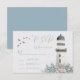 Farol de Lâmpada de Costura com conchas, corais e folhagem verde e azul macia em um fundo falso e muito leve. O fundo é um fundo azul empoeirado. Convidado de casamento. Precisa de ajuda com o esquema, basta enviar-me um e-mail para tkatz@me.com