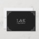 Vintage elegance RSVP cartões de resposta de casamento. Dê aos seus hóspedes uma maneira de responder se eles vierem ao seu casamento elegante. Este design de estilo retrô vai junto com convites de casamento semelhantes. Texto personalizável e qualidade do papel. As cores podem ser alteradas para corresponder ao seu esquema. Na moda com modelo de tipografia de com cantos de borda do ornamentado. Design de espirais floreadas brancas e pretas.