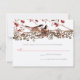 Vintage Red Berry Branch Love Birds Chickadee RSVP Response Card. Casamento de floresta, casamento de aves amadoras, casamento de aves amantes da Vintage, estética de algodão em inglês, casamento de Berry Vermelho, notas musicais cantando pássaros, Casamento de Matizes Vermelhos Mudados e Terrenos Marrons Marinhos, casamento de celeiro de fazenda russa, casamento de pomares de floresta Folga Casamento de Aves Vintage Amor Convites