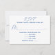 Cartões de resposta de casamento brancos com texto azul. Fontes impressas bonito e médias azuis são usadas nos modelos onde uma seleção de menu/entrada pode ser adicionada aos convidados. Ou, use um simples "comparecerá" e "não comparecerá", conforme necessário. O cartão não tem design, só tem texto. O reverso é azul consistente. Este cartão também é oferecido como um download instantâneo.
