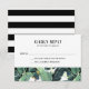 Folhas de banana glamorosas adornam este moderno cartão de resposta de casamento. A tipografia limpa e a folhagem tropical exuberante conferem um toque de sofisticação ao evento. Entre em nossa loja para ver itens coordenados: