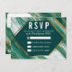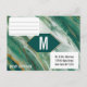 Cartões de Resposta Postais modernos, artísticos e elegantes, impressos com padrão de mármore de ágata abstrato dourado, verde esmeralda e branco. Este design clássico e sofisticado é perfeito para qualquer evento elegante e moderno, incluindo casamentos e ocasiões cotidianas. Personalize com sua própria mensagem na frente, bem como um monograma inicial personalizado no verso. Todo o design de impressão de fotos.