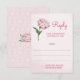 Estes cartões de resposta do casamento apresentam uma flor rosa de pénia. A parte de trás das cartas tem um padrão e uma flor de peônia. Você pode alterar a cor e o estilo da fonte clicando no botão "Personalizar". Há uma boa variedade de opções de papel e trim a serem escolhidas. Estes cartões de resposta de casamentos de pedras fazem parte de uma coleção que inclui uma gama de cheios de papelaria de casamento como convites para casamentos, cartões de informação, etiquetas de endereço, autocolantes, selos postais, envelopes, caixas de favores, cartões de desejos, programas, menus e muito mais. Visite a página de coleta em nossa loja para ver o intervalo de cheios.