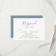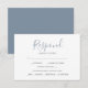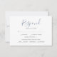 Projetados para combinar com meu conjunto de papelaria de casamento de verde botânico, este simples cartão de rsvp apresenta suas informações de resposta em uma tipografia de script caprichosa e moderna. Espaço é fornecido para os convidados adicionarem suas informações de rsvp e opções simples de escolha de refeição, incluindo sem glúten. O cartão reverte para uma cor azul empoeirado complementar. Para ver papelaria de casamento correspondente por Victoria Grigaliunas visite www.zazzle.com/dotellabelle