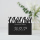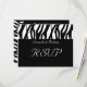 Cartões de RSVP de casamento preto contemporâneo moderno e ousado e impressionante com convites combinando com detalhes brancos, com elemento de listra vertical funky, mas sofisticado. Personalize online com os detalhes do seu casamento.