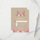 Cartões de RSVP de Casamento com Peônia Rústica e Galhada de Veado - apresentam um fundo de papel kraft country impresso com galhadas de veado, peônias rosa e folhas impressas com folha de ouro falso e letras correspondentes. O cartão de RSVP de casamento com galhada de veado pode ser totalmente personalizado usando o botão "personalize" se você precisar de mais opções de fontes, cores e muito mais. Você pode atualizar o papel do cartão ou a forma dos cartões de resposta acima.