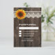 Cartões de RSVP de casamento de girassol e madeira de celeiro - apresentam um fundo de madeira de celeiro impresso ou madeira recuperada com renda e um girassol no topo. A parte de trás também apresenta o fundo de renda e madeira. Você pode atualizar o papel cartão ou a forma dos convites acima.
