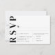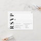 Mantenha os detalhes do seu casamento simples e elegantes com estes cartões de RSVP minimalistas. Projetados com linhas limpas e tipografia moderna, eles são o complemento perfeito para um casamento contemporâneo. Os convidados podem responder facilmente enquanto apreciam o estilo atemporal e sofisticado. Personalize com seus nomes, data do casamento e opções de resposta para combinar com o tema do seu casamento sem esforço.