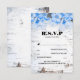cartões de resposta de casamento florais azuis rústicos e country com textura de casca de bétula em ambos os lados
