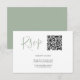 Simplifique o planejamento do seu casamento com nossos cartões de RSVP elegantemente projetados, completos com um código QR conveniente que direciona os convidados ao site do seu casamento para respostas fáceis. Esses cartões sofisticados não são apenas práticos; eles são um componente estiloso da papelaria do seu casamento, apresentando uma cor verde sálvia refinada no verso que complementa qualquer tema de casamento, especialmente aqueles com elementos naturais ou terrosos.