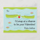 Uma ilustração esbranquiçada de um jacaré segurando um coração vermelho na boca. Está prestes a oferecê-lo ao outro gator na lagoa. O texto diz: "Eu teria uma chance de ser seu Namorados!". Personalize com o nome de uma criança.