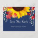 Cartões Postais de Salvar a Data de Casamento Girassol Azul Marinho
