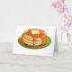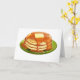 Este design é um cheio de pratos de panquecas deliciosas. No prato estão três panquecas com xarope de bordo rolando sobre eles e um pouco de manteiga derretendo no topo. Eles parecem tão deliciosos. Este design de panquecas parece excelente nestas placas de saudação