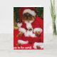 Um cartão de Natal adorável apresenta Yorkie Terrier (Annie) em sua roupa de Papai Noel desejando a todos, "Alegria ao mundo!"