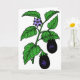 A beringela é uma planta interessante e meio incomum. Esta design é um maravilhoso exemplo de beringela com a fruta pendurada em algumas folhas verdes e também uma flor roxa. Este design de beringela parece excelente nestas placas de saudação