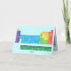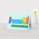 Cartão de saudação/anotação com mesa periódica dos elementos, com cada grupo de elementos marcado em cores arco-íris.