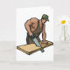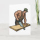 Este design é um carpinteiro. O carpinteiro é duro em trabalho serrando por alguma madeira. Este design de carpinteiro parece excelente neste Cartões de Saudação