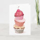 Cupcakes de amor então este design é perfeito para você. É uma pilha de cupcakes legal. São três cupcakes empilhados um no outro. Todos eles têm uma aparência maravilhosa de gelo e parecem muito saborosos. Este design de pilha de cupcakes parece excelente nestas placas de saudação