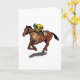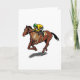 Corrida de cavalos é um esporte tão maravilhoso para se assistir enquanto esses animais magníficos correm pela pista. Esta design é de uma corrida de cavalos e parece soberba. O cavalo está correndo junto com o jockey enrolado nas costas. Este design de corridas de cavalos parece excelente nestes cartões de saudação