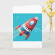 Sonhando em voar pelo espaço em uma nave espacial. Bem, então esta design responderá a esse sonho. É de uma espaçonave colorida que está zimbando pelo espaço. O foguete é multicolorido e tem uma trilha de vapor pela parte de trás. É colocado sobre um fundo azul. Esta design de espaçonave voadora parece excelente nestes cartões de saudação