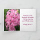 Lindas flores cor-de-rosa adoram essas cartas de saudação personalizadas. A foto que tirei dos jacintos florescendo no meu jardim floral. O texto na frente é escrito em branco sobre as flores cor-de-rosa. O dentro de texto é escrito em cor-de-rosa profundo em um fundo branco. Existem formulários de modelo para você digitar facilmente sua própria mensagem. Obrigado por comprar em CherylsArtPhotos no Zazzle.
