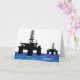 As plataformas de petróleo são construções impressionantes e esta design mostra um casal de grandes plataformas de petróleo no oceano. Há uma plataforma de petróleo em primeiro plano com a segunda em segundo plano. Este design de plataforma de óleo parece excelente nestas placas de saudação