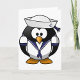 Um design super fofo de um pinguim vestido de marinheiro. Este pinguim parece tão adorável que você vai querer levá-lo para casa. O pinguim está se vestindo em uma roupa de marinheiro de cheio incluindo o chapéu. Este marinheiro de pinguim parece excelente nestas cartas de saudação