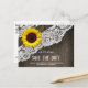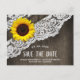 Cartões de Save The Date de casamento de madeira de girassol + renda