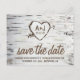 Cartões de Save the Date de casamento rústico com casca de árvore de bétula - apresentam um fundo de casca de árvore de bétula com um coração para gravar suas iniciais personalizadas com a data do casamento. Veja a coleção correspondente nesta página para completar seu evento.
