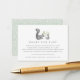 Use estes cartões de inserção de convite para convidar convidados de chá de fraldas a trazer um livro para o bebê em vez de um cartão. A simples floresta inspirou um design com uma doce cor de água, mama esquilo compartilhando um galho verde e bagas com seu bebê. Inclui um poema curto explicando a solicitação do livro e um campo de texto personalizado para o nome e a data do evento. Concebido para corresponder ao nosso convite para chá de fraldas dos Amigos do Woodland.