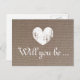 Cartões de textura burlap | Você será minha dama de honra. Design de coração giro bonito para o casamento de chic country.