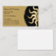 Cartões de visita de bronzeamento com imagem de um símbolo de sol estiloso e espaço para texto personalizável. Altere a cor do fundo e faça deste seu. Melhores cartões de visita para salão de bronzeamento, suprimentos de bronzeamento ou qualquer coisa relacionada ao sol.