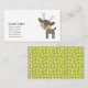 Tenha algum divertimento com estes cartões de visitas ilustrados com um marrom, antlered, gráfico dos cervos do fanfarrão do estilo dos desenhos animados (ou talvez seu uma rena). A ilustração animal da floresta adorável faz-lhe um cartão perfeito para os autores das crianças, os professores da primeira infância, os proprietários da guarda, os especialistas dos animais selvagens ou o qualquer um que queira um cartão de visita de uso geral amigável. Use os campos do suficiência-em--vazio para personalizar facilmente estes cartões com seu nome e para contactar a informação na parte dianteira. A parte traseira tem um impressão geométrico do teste padrão do verde limão.