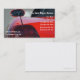 Modelo automotriz dos cartões de visitas com design desportivo que inclui a parte traseira de um carro de esportes no fundo, texto que você pode personalizar, e um design de cartão de visita que trabalhe bem para uma loja de auto corpo, um serviço de reparação automóvel, ou um técnico.