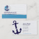 Este cartão de visita apresenta um design de logotipo de corda em torno de uma âncora azul.