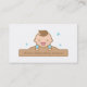Um design de cartão de visita bonito para baby-sitter, professores ou trabalhadores da puericultura. Caracteriza um doodle de um bebé pequeno bonito e feliz com suas mãos sobre o sinal. Estrelas azuis pequenas para decorações. Personalize o nome da empresa no espaço do sinal e adicione seus detalhes do negócio na página reversa.