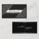 Pernos metálicos prateados e faixas diagonais cartões de visitas brancos pretos, com dois triângulos cobertos com pernos metálicos em dois cantos do cartão, faixas diagonais de prata e uma banda branca no centro com seu nome. Fundo preto.