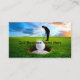 Cartão de visita de golfe cênico em um design inteligente com silhueta de golfe e bola de golfe no buraco contra um belo céu. Projetado para qualquer um que faz aulas de golfe, treinamento de golfe, vende equipamentos e suprimentos de golfe, ou um site de golfe.