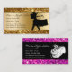 A moda clássica e o cabelo lindo moda cartões de visitas com belos fundos simulados de ouro e brilho dourado, impressos na parte frontal e simulados brilhos cor-de-rosa impressos no verso. Personalize este modelo, adicionando o seu próprio texto no segundo lado com a impressão de dois lados incluída. Melhores cartões de visitas para uma butique de roupas, loja de moda, estilo online e salão de cabelos.