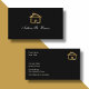 Cartões de visitas personalizados clássicos para a indústria imobiliária ou serviços domésticos projetados em estoque de cartão brilhante com gráficos de casa de tom dourado que podem ser usados em nossas placas e layout de cartão de visita clássico editável. Criado para os negócios Realtor, Broker, home builder ou house remodeling.