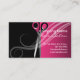 Cartões de visitas coloridos modernos. As características de design um pares de tesouras e de um cabelo elegante rodam. Personalize o texto do modelo com sua informação do negócio para fazer-lhe seu próprio cartão telefónico original do negócio. Trabalhos de arte pela arte & pelo design de ChanDraws. Sinta livre contactar-me se você precisa a ajuda com a personalização ou se você gostaria de combinar produtos. kepplemorgan@shaw.ca