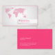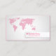Modelo de cartão de negócios customizável com o mapa do mundo pontilhado no rosa magenta.