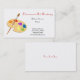 Cartões de visitas apropriados para algum artista ou professor de arte. Este cartão caracteriza um fundo branco com um desenho de uma escova da pálete da pintura e de pintura no lado esquerdo. Todo o texto é customizável na parte dianteira e a parte traseira e você podem adicionar mais se necessários.