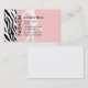 Forme cartões de visitas com design elegante que inclui um teste padrão animal das listras preto e branco da zebra, grande disposição que do texto você pode personalizar, e cor do fundo você pode personalizar para serir seu gosto com imagem de uma senhora da forma como um contexto. Projetado como um cartão de visita para um boutique da roupa, um modelo de forma ou um desenhista.